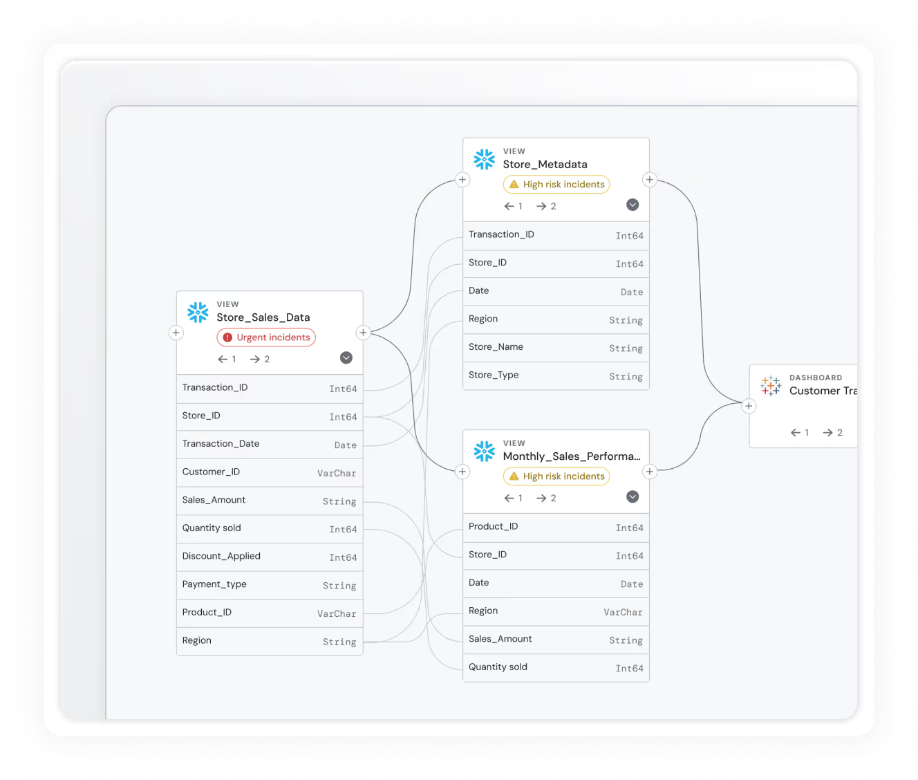 Its lineage view speeds up the triage process by connecting real-time alerts to visual data flows, allowing you to assess downstream effects quickly.