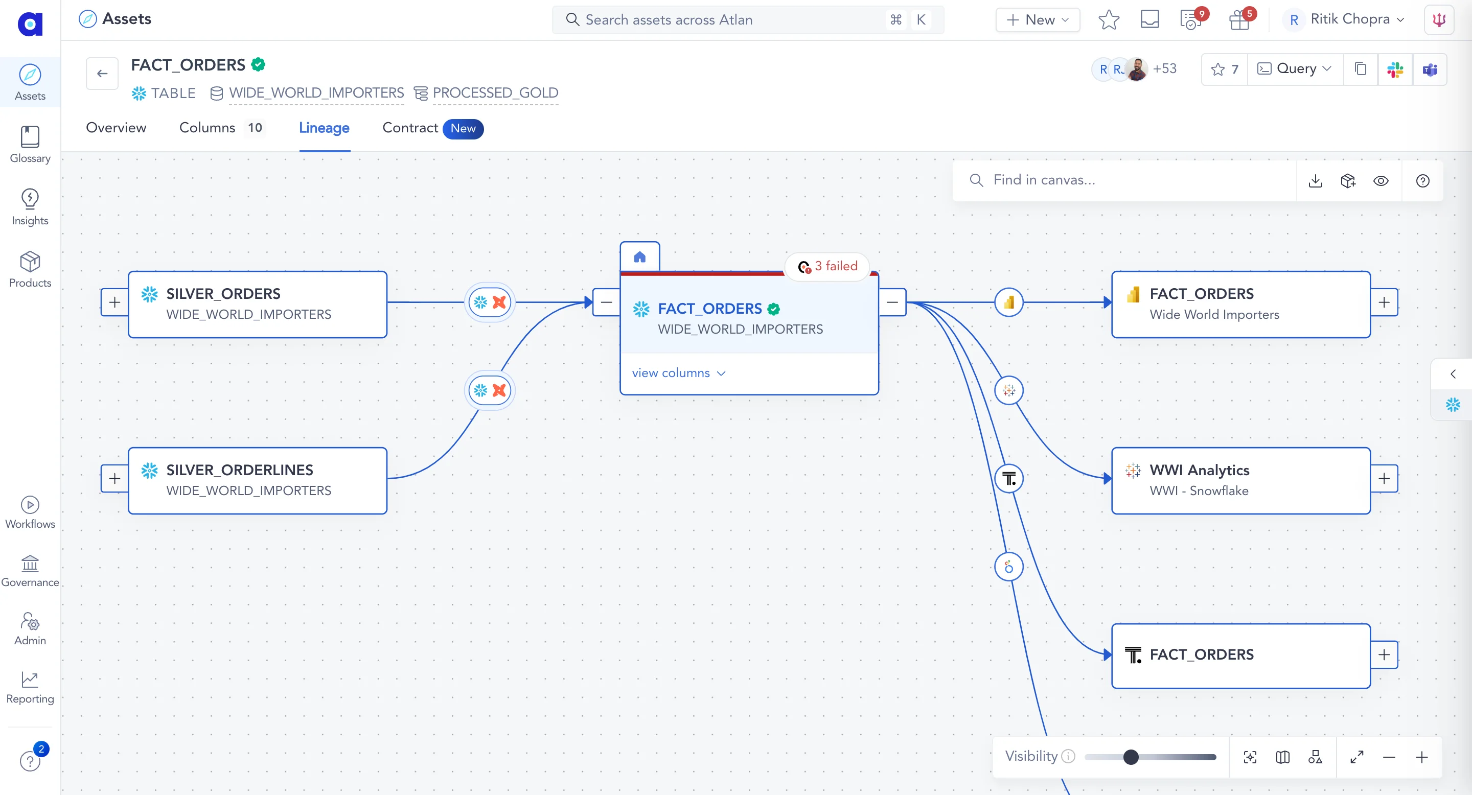 The tool delivers a clear, visual representation of data movement, showing both upstream sources and downstream consumers while pairing lineage information with data quality checks.