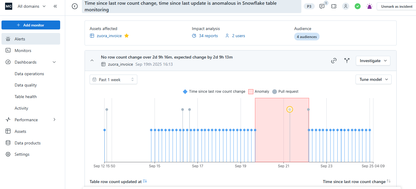 Observability flags these anomalies automatically before the Finance team runs its end-of-month reporting.