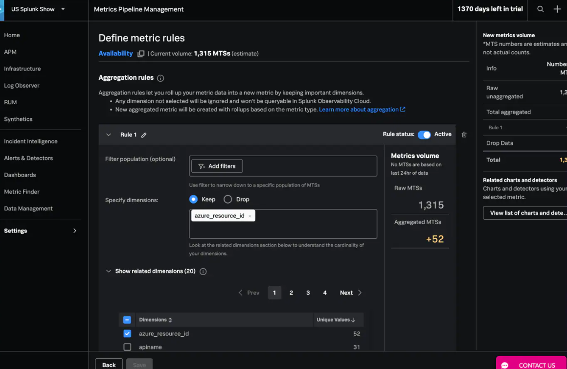 With Splunk, you can define the metrics you want to track so you can focus your monitors and not scale your bill.
