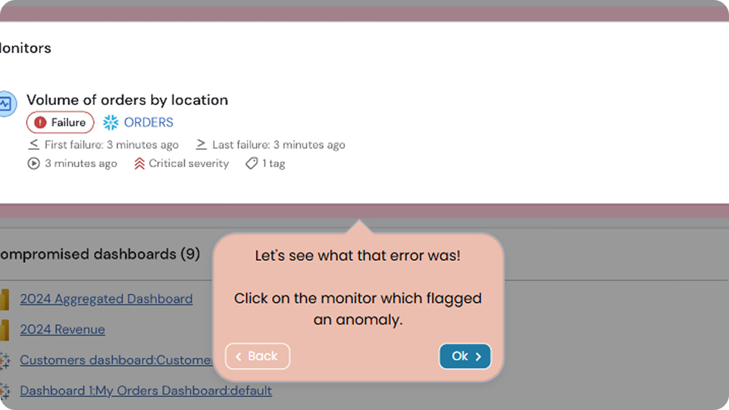 See exactly what triggered the anomaly - the asset involved, what changed, and which downstream data is affected - without digging through logs or dashboards.