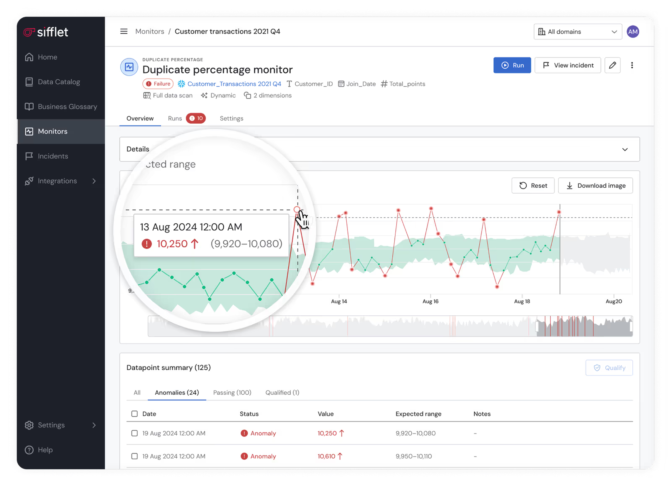 Sifflet recommends the right monitors based on risk, change frequency, and downstream impact, no manual rules required.