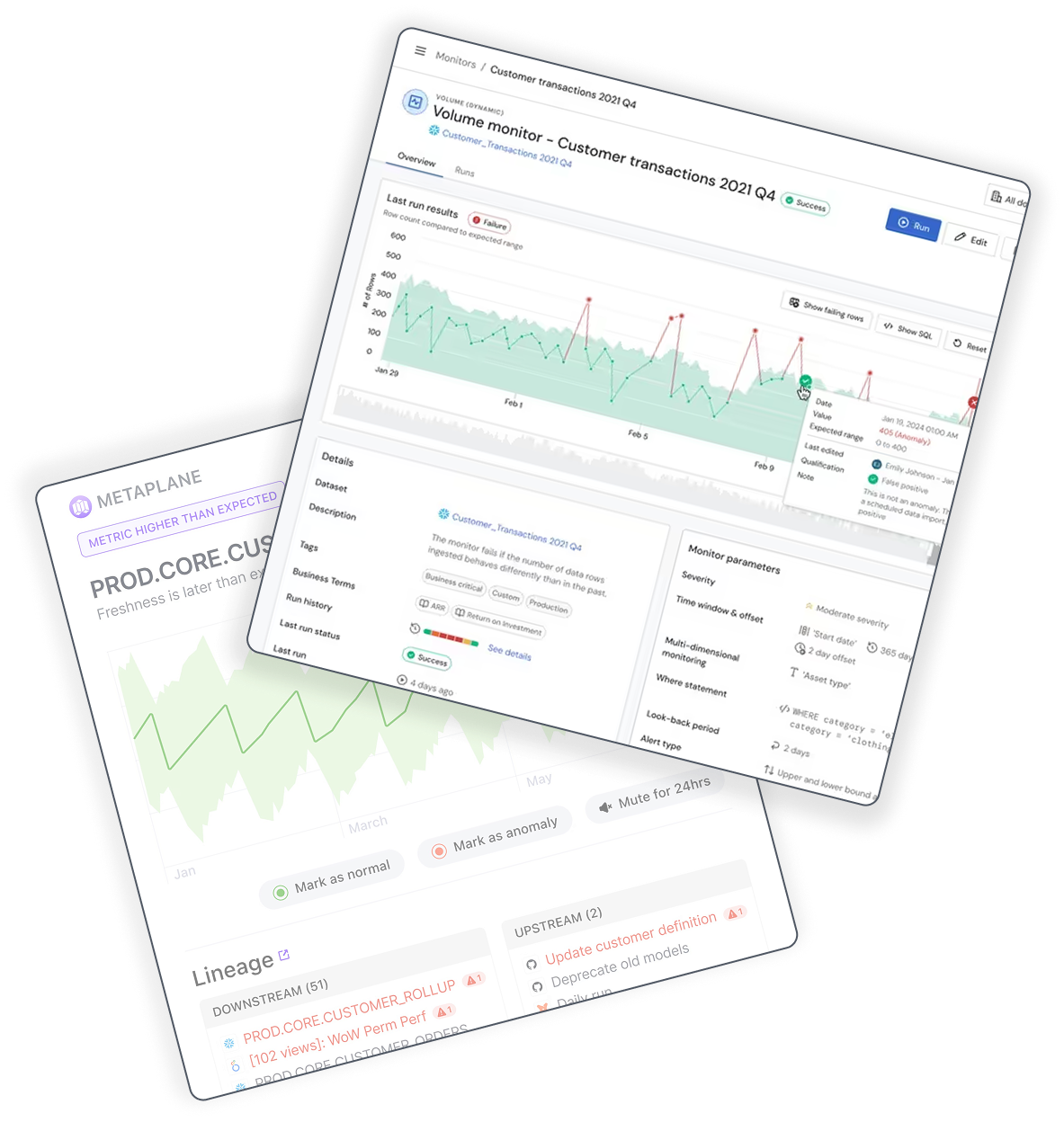 Both platforms detect anomalies. Sifflet adds business context, impact analysis, and faster root cause workflows - built for teams scaling modern data stacks.